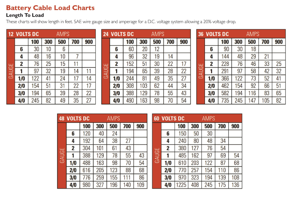 Battery Cable Load Charts